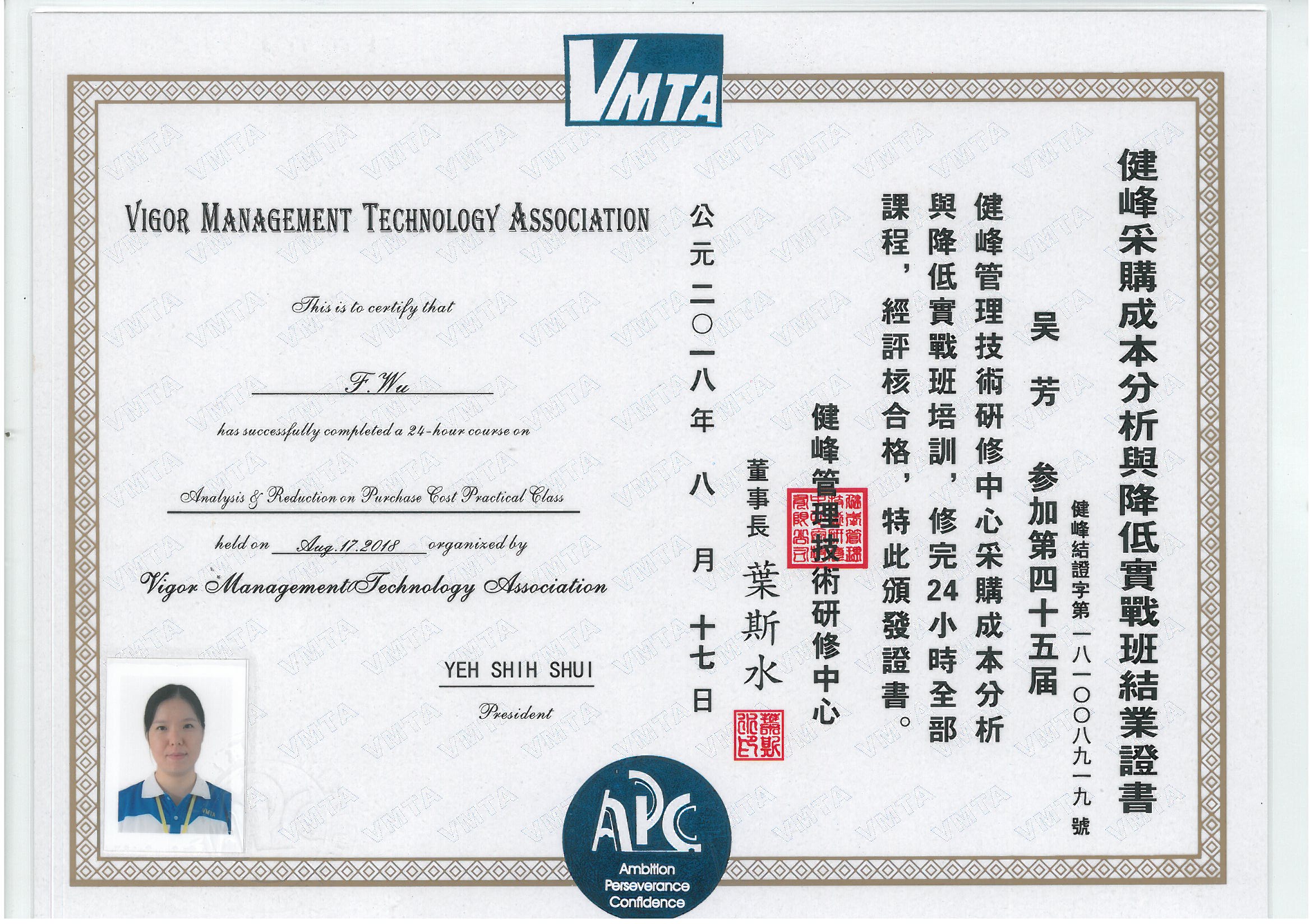 為開拓公司管理層視野,提升(基)中層人員專業(yè)素養(yǎng),我司特與健峰管理技術(shù)研修中心合作—量身定制適合每一位管理干部的專業(yè)課程?,F(xiàn)已完成培訓(xùn)結(jié)業(yè)的課程有:目視化管理實務(wù)、采購成本分析與降低實戰(zhàn)、車間管理七大實務(wù)、以及物料與倉儲管理實務(wù)。